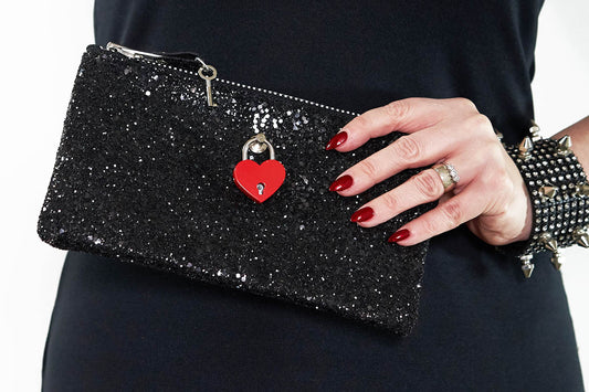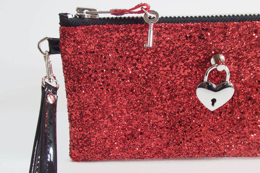 Clutch bag w/ padlock in Bright Red Glitter