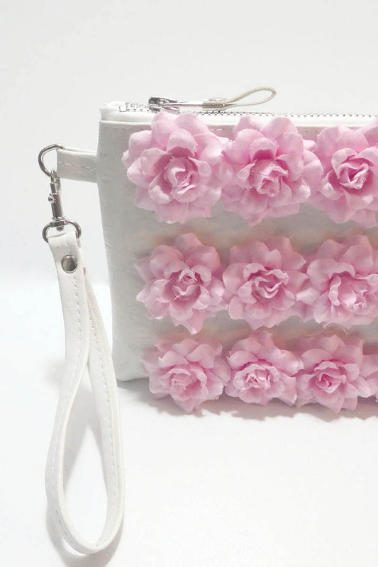 Clutch bag w/ Roses in White and Pink