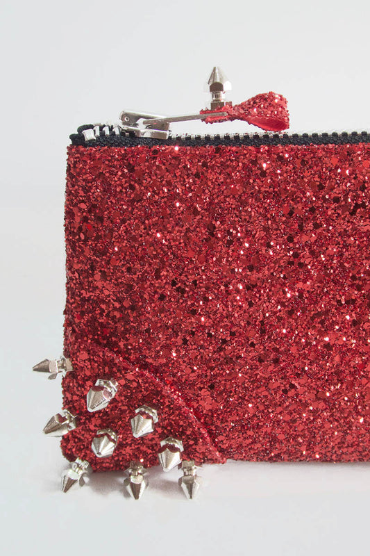 Make up bag w/ spikes in Bright Red Glitter