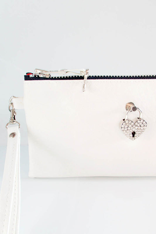 Clutch bag w/ padlock in White Leatherette