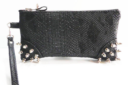 Clutch bag w/ spikes in Snake