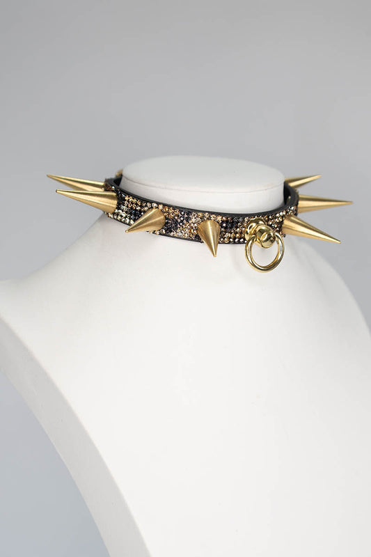 Slim Choker with Spikes and Ring