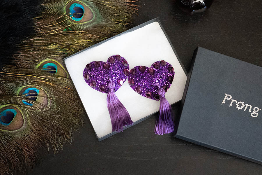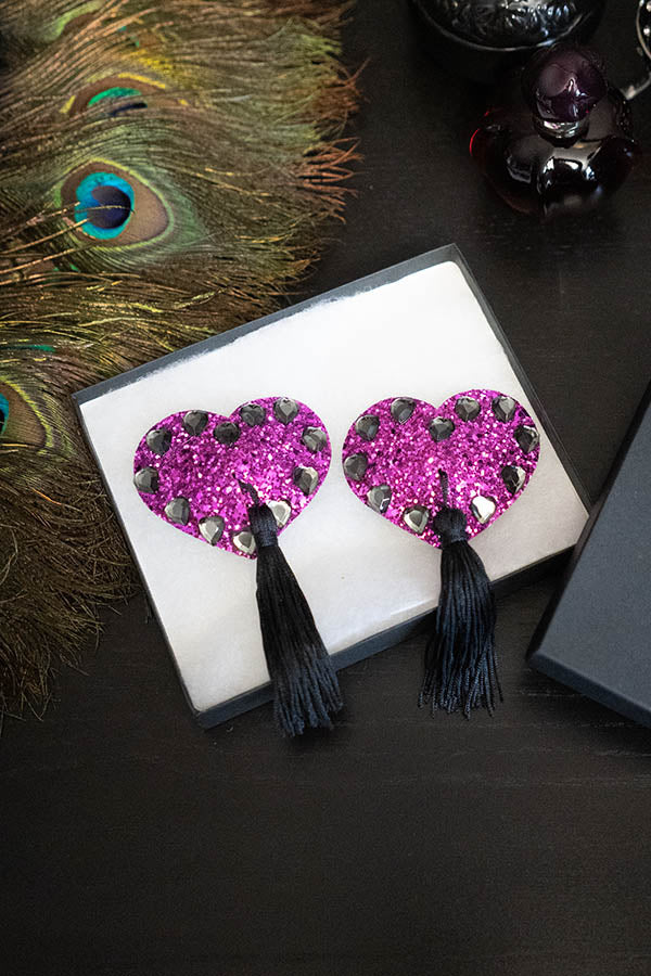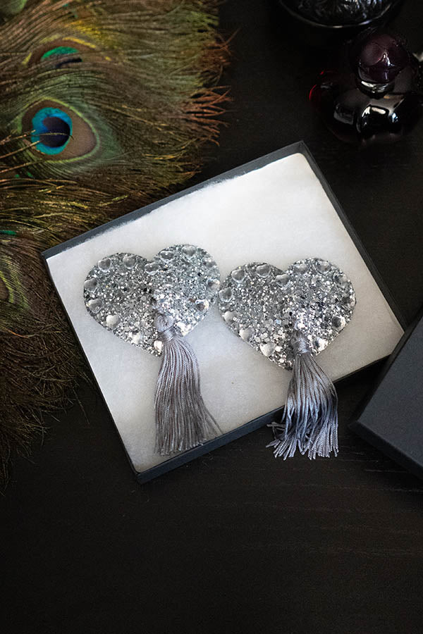Add some sparkly glam to your look with these heart-shaped nipple covers, featuring acrylic crystals and playful 8cm tassels. The tassel and crystal colours will match for a coordinated look.
